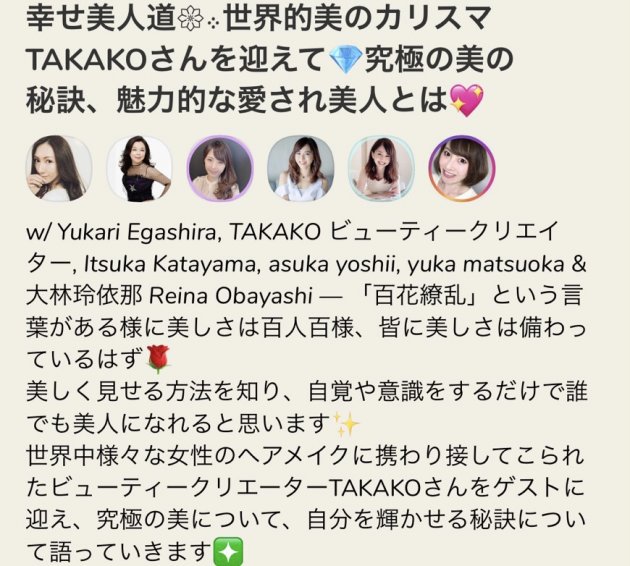 ビューティークリエイターTAKAKOさんをお迎えしてClubhouse開催します![]()